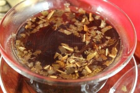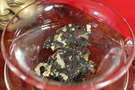 Сырьё состоит из молодых почек, листьев и типсов, смешан с листьями лотоса.